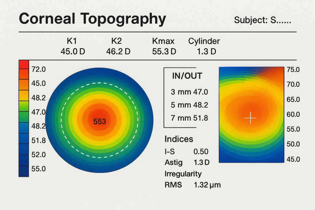 בדיקה זו מספקת תמונה תלת־ממדית מדויקת של פני הקרנית, מה שמאפשר לזהות שינויים עדינים שלא תמיד נראים בבדיקות רגילות. בזכותה ניתן להתאים טיפולים מתקדמים כמו עדשות מגע ייחודיות או ניתוחי לייזר בצורה מדויקת ובטוחה יותר.